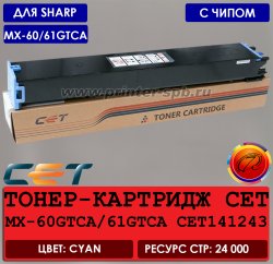 | Тонер-картридж совместимый MX-60GTCA CET141243 "CET", цвет: cyan, ресурс стр.: 24 000 | ||