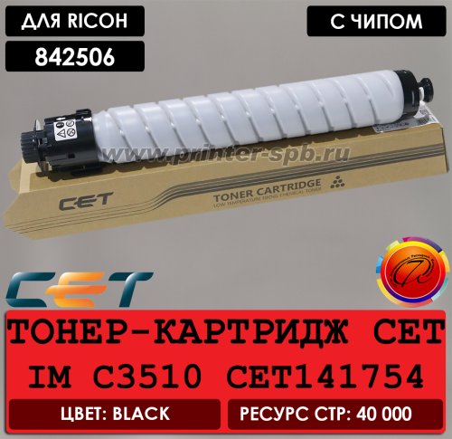 Тонер-картридж совместимый 842506 CET141754 "CET", цвет: black/черный, ресурс стр.: 40 000 | ||