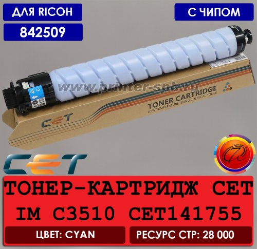 Тонер-картридж совместимый 842509 CET141755 "CET", цвет: cyan/голубой, ресурс стр.: 28 000 | ||